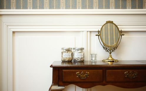自宅でくつろぐように過ごせるブライズルーム。緊張しがちな一日も、肩の力を抜いて支度の時間を楽しめます。