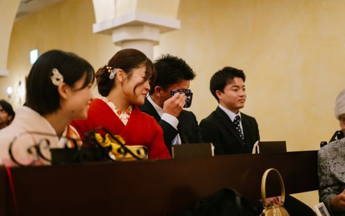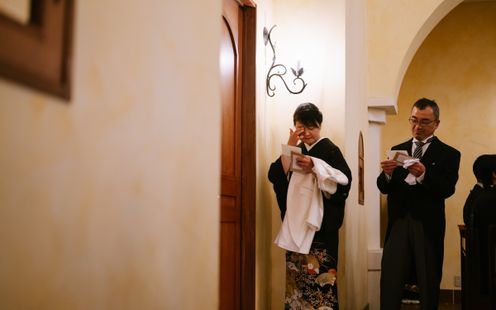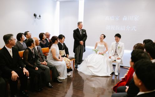 両家の大切な顔合わせの時間をゆったりとお過ごしいただける、専用の親族紹介室をご用意。落ち着いた空間で、和やかにご挨拶や紹介を行っていただけます。室内にはスクリーンも備え、思い出の映像を上映することで、両家の絆がより深まるひとときに。さらに親族専任の介添えスタッフが丁寧にサポートするため、進行やご案内も安心してお任せいただけます。