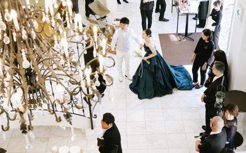 各会場にそれぞれ2部屋ずつ備えた、完全個室のラグジュアリーなブライズルーム。室内から直接2階へ上がれる動線のため、ゲストに衣装を見られる心配もなく安心して当日を迎えられます。挙式後はシェフが一から仕立てる特別料理で、ふたりだけのプライベートディナーを。感動の余韻をゆっくりと味わえる、大切な時間までご用意しています。
