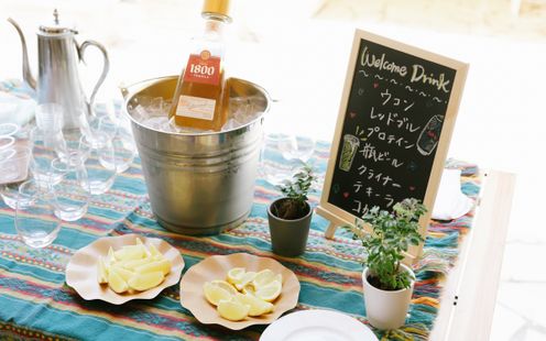 こんな結婚式のおもてなし今まであった?挙式の前後に楽しめるアペリティフタイム。新郎新婦がゲストをお出迎えし、ドリンク片手に会話が弾む特別な時間です。披露宴前から心が弾み、フルコースへの期待も高まります。
