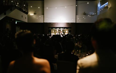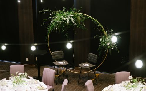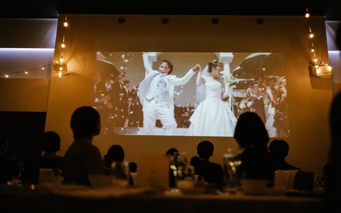 洗練された大人のカップルにおすすめのパーティルーム「シエル・デ・トワールNY」。シックでモダンな空間では最新鋭の映像演出&音響設備を備え、ライブ感あふれるパーティをお愉しみいただけます。美食を愉しみながらふたりらしいおもてなしの演出を。