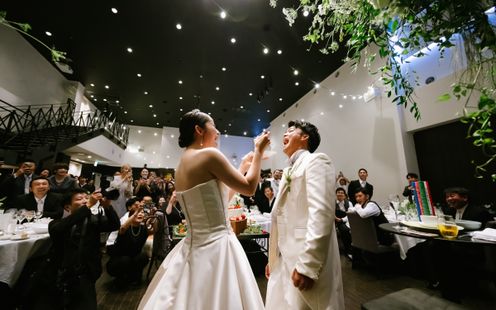 星付きシェフ監修実績を持つ本格フレンチでおもてなし。味わいはもちろん、目でも楽しめる一皿一皿が、特別な一日をより印象深く彩ります。披露宴会場にはオープンキッチンを併設し、出来立てを最高のタイミングでご提供。立ち上る香りや調理の音までもが演出のひとつに。さらにパーティー前にはアペリティフの時間をご用意し、ゲスト同士が自然に会話を楽しめるひとときを。美味しいだけではなく、「楽しかった」と心に残る祝宴をお届けします。