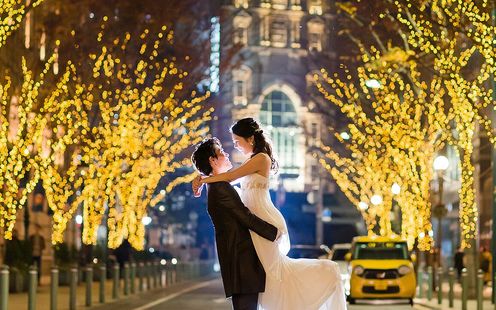 ロマンチックなランタン演出はフォトジェニックなワンシーンが残せると人気です。また、クラシカルで上品な館内だけでなくイルミネーションがきらめく並木道などロケーション撮影もお任せください。
