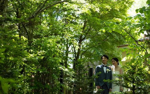 軽井沢の四季折々の自然と木漏れ日に包まれるガーデンウエディング&記念撮影が人気!