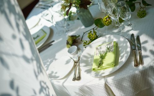 フランス人シェフ・アルマン氏の料理は塩分と油分をできるだけ控えているのが特長。「素材が力強いからシンプルな調理法で素材を活かす」ナチュラルなプロヴァンス料理は、多くの食通をもうならせたミシュランの味。その土地の風土や文化を活かし、一流のシェフが手を加えた一品は、ここでしか味わえない最高のおもてなしです。料理に合わせて厳選ワインやシャンパン、ソフトドリンクもこだわりの逸品を味わっていただけます。
