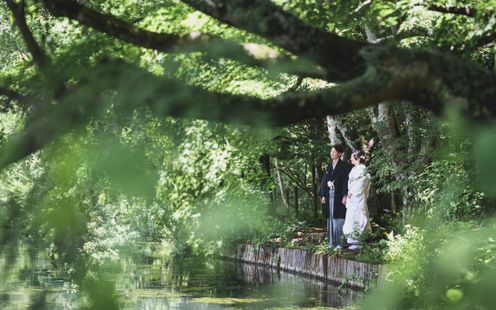 雲場池のほとりに佇む貸切邸宅だからこそ叶う当日ロケーションフォト。
