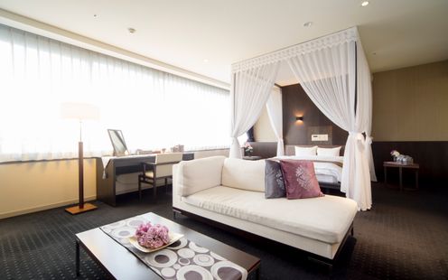 ふたりにはスイートルームが用意されており、式前日にゆっくり過ごしたり、後泊して幸せの余韻を長く感じたり贅沢な時間が叶います。熊本市内で唯一といわれる炭酸水素塩泉を楽しめる菊南温泉は、「美人の湯」としても知られる名湯。遠方から訪れる親族やゲストにも、温泉付きホテルならではのくつろぎの時間は好評です。