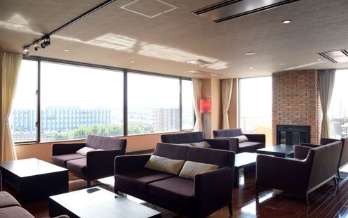 落ち着いた雰囲気のくつろぎ空間。大きな窓から明るい陽光が差し込み、ゲストとの語らいの時間をゆったりと過ごせます。