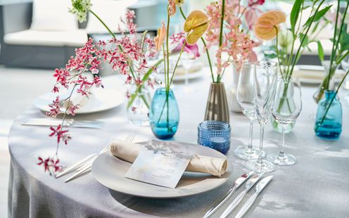 エキゾチックな雰囲気とスタイリッシュさを掛け合わせたゆったり広い会場は、大きな窓から自然光が降り注ぎ開放感もたっぷり。モダンな別荘さながらの空間を貸切にしてゲストとの距離が近いアットホームなパーティが叶います。窓の向こうには水辺のあるテラスが広がりパーティ会場と自由に行き来ができるので、動きのあるパーティに。青空の下、キラキラ煌く水面を眺めながら過ごすリラックスタイムにおしゃべりも弾みそうです。ナイトパーティはたくさんのキャンドルを灯してロマンチックな雰囲気。オリジナルカクテルをふるまって大人のパーティはいかがでしょう。