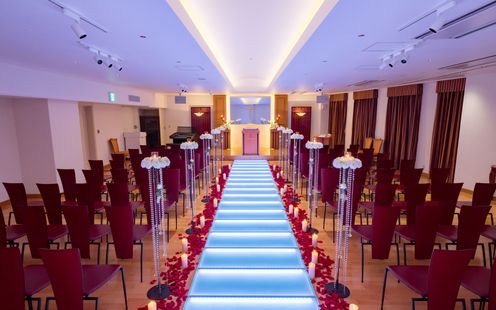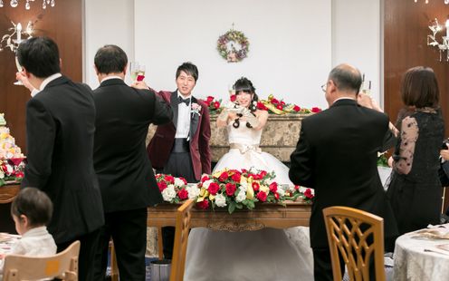 | 持込料金 | ドレス・衣装(22,000円)・装花(持込不可)・ブーケ(無料)・引き出物(330円)・引き菓子(330円)・印刷物(無料)・DVD(無料)・飲み物(持込不可)・ウェディングケーキ(持込不可)・カメラマン(33,000円)・ビデオ撮影(33,000円) |