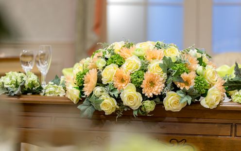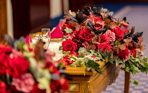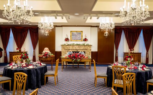 上品なバンケットは大理石の暖炉やグランドピアノを備えた広々とした空間。