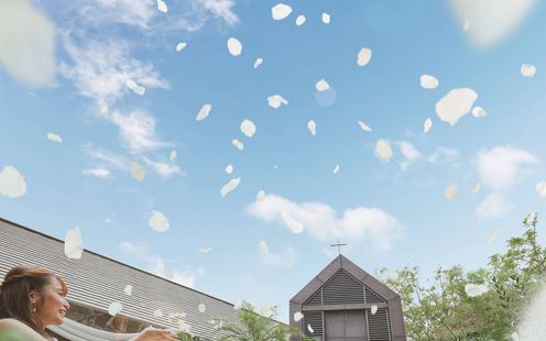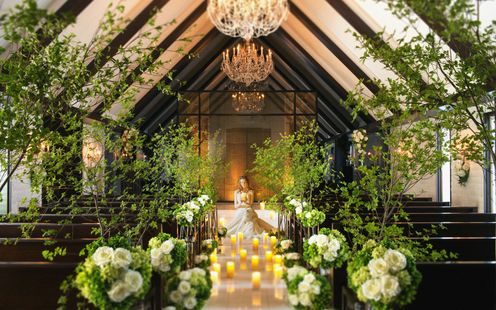 溢れる自然光や優しい滝の水音。自然の安らぎ漂う独立型チャペル