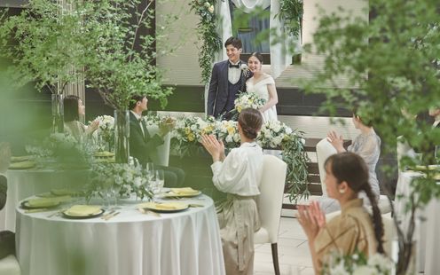 専属フローリストがふたりのイメージを丁寧にヒアリングして、会場全体をおもてなしに満ちた空間にコーディネートいたします。季節感あふれる演出、ふたりの好きなアイテムの持込などご希望は何でも気軽にご相談ください。