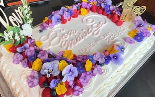 ふたりの想いをかたちにする、オリジナルウエディングケーキ。専属パティシエがご希望をもとに丁寧に仕上げます。ケーキ入刀後は、アイスクリームや旬のフルーツを添えた華やかなデザートプレートとして、ゲストへおもてなし。