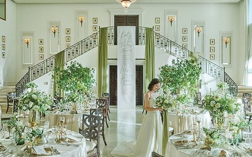 プール付きガーデンのあるパーティルーム。お姫様階段からの入場も叶う光あふれる空間