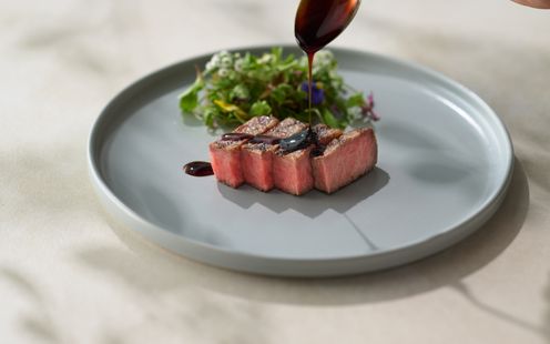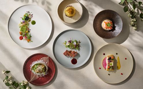 名門 河文の精神と技法を受け継ぐシェフが手がける和テイストの婚礼メニュー。その名に誇りを持ち、目にも美しく、また素材の繊細な味にもこだわっています。おふたりのためにお集まりいただいたゲストへの感謝が料理で伝わるよう、全てのお皿に想いを込めています。