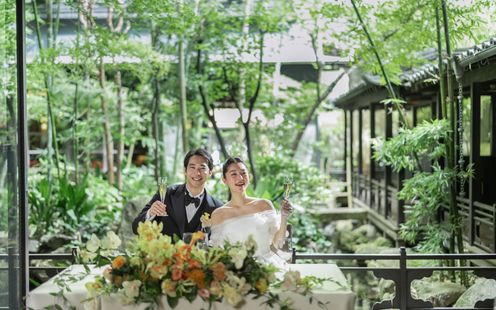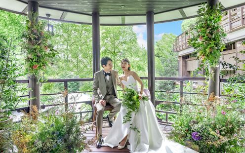 都心とは思えない開放的な空間を楽しめるカワブンのガーデン。自然に包まれ、リラックスした雰囲気のなかで行うウェディングは、おふたりとゲストの距離を近くに感じられます。歴史あるクラシカルな建物ではどの場所からもガーデンを望み、緑と共に撮影をお楽しみいただけます。洗練された美しいガーデンは、どんな演出よりも特別な一日を過ごすおふたりを引き立てるでしょう。
