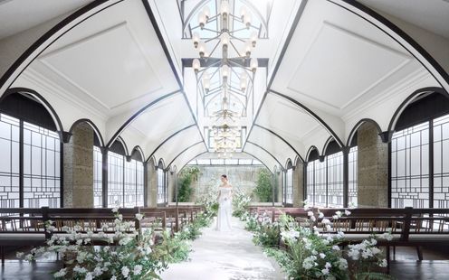 天窓&ステンドグラスからの自然光が花嫁を包みこむモダンな美しい新チャペル