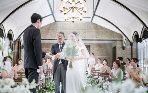 参列の皆様に向かって誓いを立てる、温かな挙式スタイルを提案。ふたりの想いを詰め込んだ、オリジナルの挙式が可能です。プランナーとの相談によって、オリジナリティあふれる挙式が叶います。