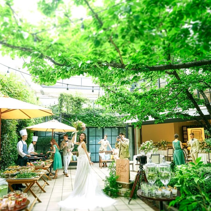 【プライベートガーデンでの演出が叶う】緑溢れる貸切ガーデンでゲストと一緒に楽しめる「グリルビュッフェ」が大人気♪専属シェフがこだわり食材でライブ演出!他にも「スープビュッフェ」のオリジナル演出も