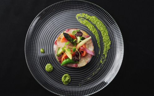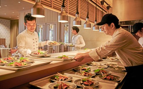 私たちはFarm to Table のコンセプトのもと地元の食材を大切に、農場から直接仕入れた新鮮で安全な食材を使用しています。海産物は福岡の食材のほか、北海道知床の羅臼町から新鮮で最高級の食材が届きます。産地の方々と協業しフードロス問題に取り組みながら、 シェフ自ら産地へ足を運んで旬の素材を厳選し仕入れています。 そんな旬の厳選素材を贅沢に使って創作する「ジャパニーズキュイジーヌ」に、日本の四季折々のおいしさを盛り込みます。素材の力を引き出した、世代を問わず愛される料理で、ゲストの記憶に残る幸せ溢れる時間をお手伝いします。