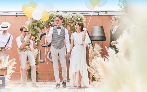 福岡市天神の中心に位置するクアンティックの8階ルーフトップではガーデン人前式も叶う
