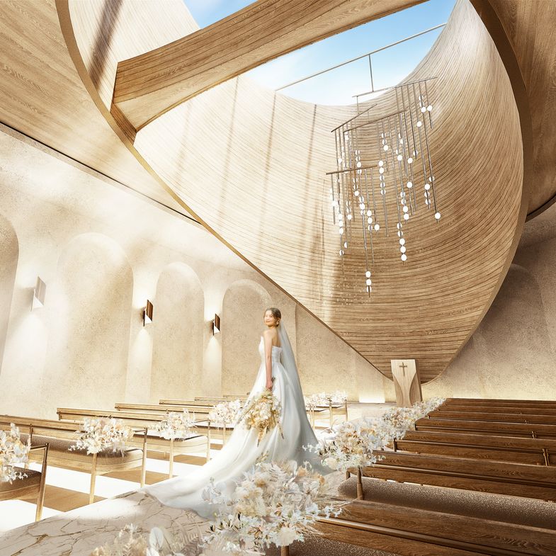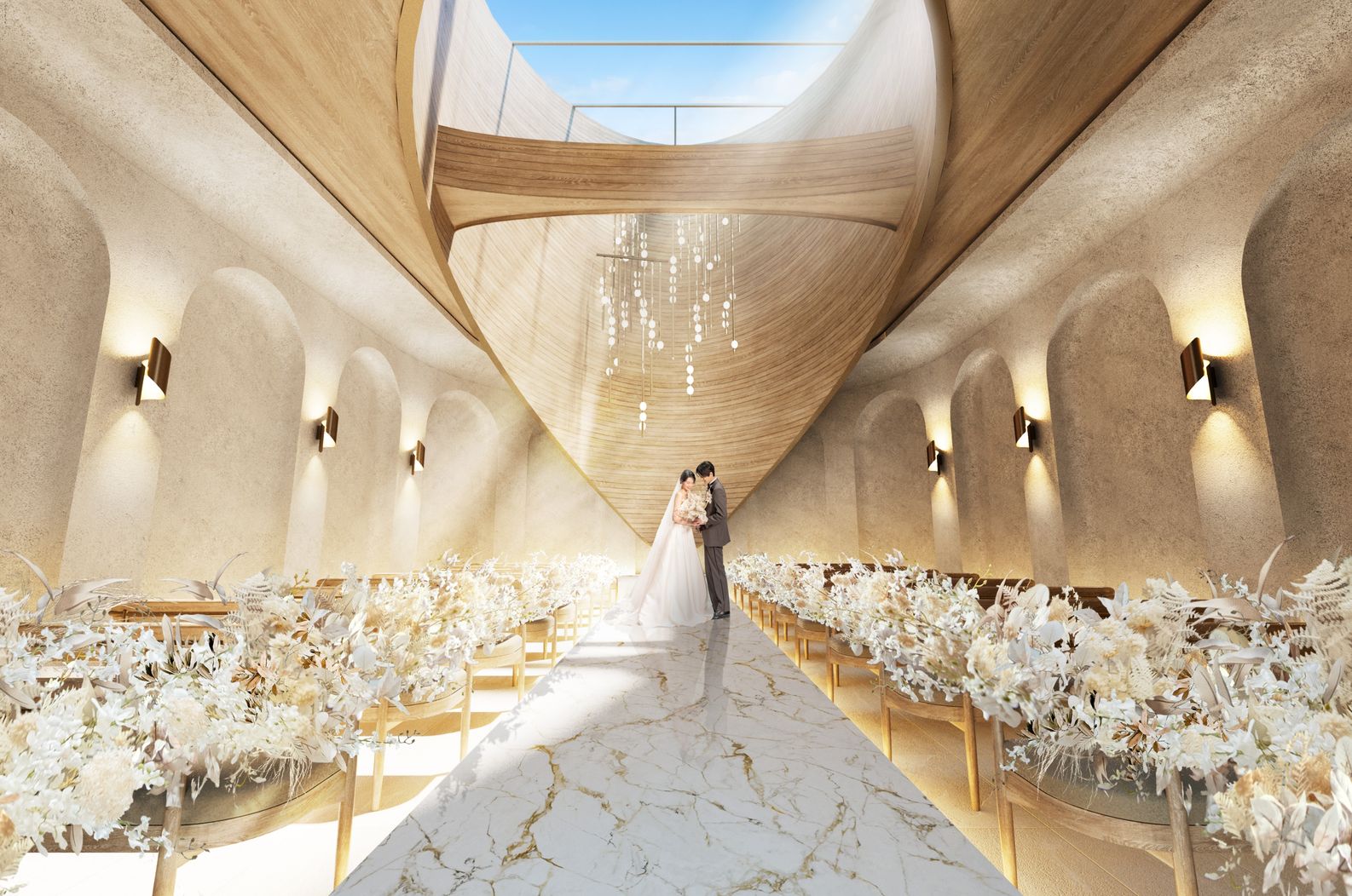 01.<2026年9月リニューアル完成>空に向かって広がる天窓から光が降り注ぐ洗練チャペル