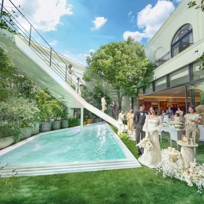 03.<ガーデンに大階段も!>緑に囲まれた非日常感溢れるプール付ガーデンで寛ぎのひとときを