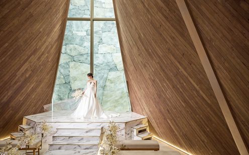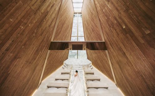 圧巻の天井高10mの光・水・音を感じるトライアングルデザインのチャペルが登場!