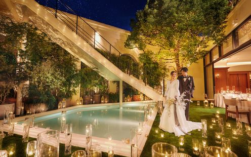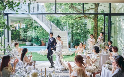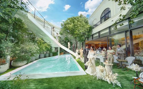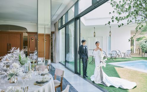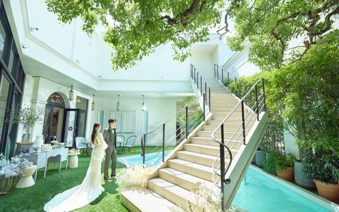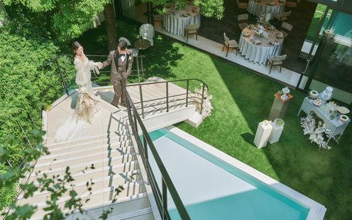 貸切邸宅に緑豊かなプール付ガーデン!リニューアルでふたりが華やかに入場する大階段が登場