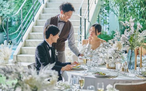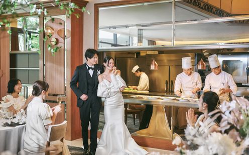 食材や鮮度への厳選とこだわりには一切の妥協がございません。一組貸切だからこそ、「ふたりだけのためのシェフ」がかけがえのないひと時を過ごしていただくために、食材や味へのご要望をグランシェフがお伺いし、ふたりらしさを表現したメニューを考案いたします。仕込みは一週間かけ、丹精込めた絶品料理を提供。また、「直前まで火入れはしない」、「冷凍や粉末は一切使用しない」というのも、効率が重視される婚礼料理において稀有なこだわり。ブライダルフェアで記憶に残る美食をぜひ体験してみては。