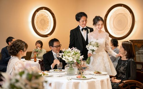 アールヌーボー様式の美しい装飾とやわらかな光が溶け合い、優美でどこか懐かしさを感じさせます。ゲスト一人ひとりの表情を感じながら、お世話になった家族や友人へ丁寧に感謝を伝えることができます。