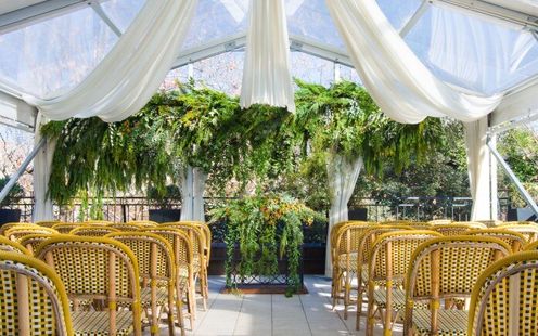 小鳥たちのさえずりも聞こえる東京とは思えない大自然に囲まれて、憧れのガーデンウェディングが叶います。ルーフトップのセレモニースペースは、ふたりの結婚式のテーマや季節、憧れのイメージにそってフラワーコーディネートいたします。大切な人々に囲まれてのアットホームなセレモニーが叶います。日比谷公園内でゲストみんなとの集合写真も撮影可能です。また、大切な家族であるペットも参列いただけます。