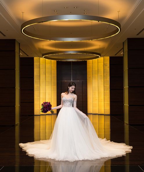 イタリア、スペイン、ニューヨークのデザイナーズブランドやオリジナルドレスなど多彩な品揃え。希望によりオーダーメイドも可能です。また、ヘアメイクは世界を魅了する資生堂のトップスタイリストと納得いくまで打合せを重ね、リハーサルメイクで憧れの花嫁姿を確認。こだわりのスタイルをより美しく表現し、あなたらしさを最高に輝かせることを約束します。さらにドレスを着たときの立ち姿、歩き方、ブーケを持つ位置など挙式前の立ち振舞いをアドバイスし、優雅な花嫁姿へと導きます。