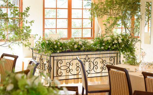 会場内を囲む三方向の窓が特徴の〈ル・シエル〉。「港の見える丘公園」をはじめ、「ローズガーデン」&西洋館が建ち並ぶ「山手の丘」の景観が美食とともにゲストへのおもてなしになります。また、同時間に他のパーティが行われていないので、花嫁同士がすれ違うこともなく、フロア貸切なのでふたりらしいパーティを存分にお愉しみいただけます。ウエルカムスペースを飾るアイテムなどの持込も可能なので、まずはプランナーまで気軽にご相談ください。