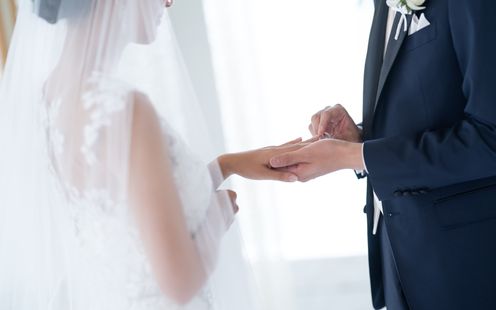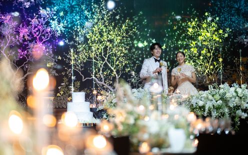ケーキカットは挙式の一大イベント。シャングリ・ラ 東京では、ふたりの思い入れが深いモチーフを取り入れることはもちろん、8段に積み上げたり、時にはスワロフスキーをちりばめたりすることも。世界にただ一つの夢のようなケーキをフォトジェニックに演出し、ゲストに幸せなサプライズをお届けします。
