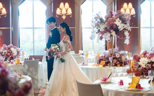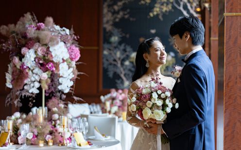 リュクスな会場の雰囲気にふさわしいフラワーアレンジメントが唯一無二のウェディングストーリーに華を添えます。ドレスや料理との絶妙なコラボレーションとディテールにこだわったデザインでふたりの特別の一日を演出いたします。