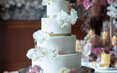 ケーキカットは挙式の一大イベント。シャングリ・ラ 東京では、ふたりの思い入れが深いモチーフを取り入れることはもちろん、8段に積み上げたり、時にはスワロフスキーをちりばめたりすることも。世界にただ一つの夢のようなケーキをフォトジェニックに演出し、ゲストに幸せなサプライズをお届けします。