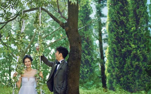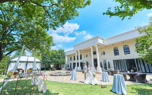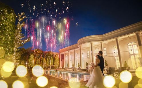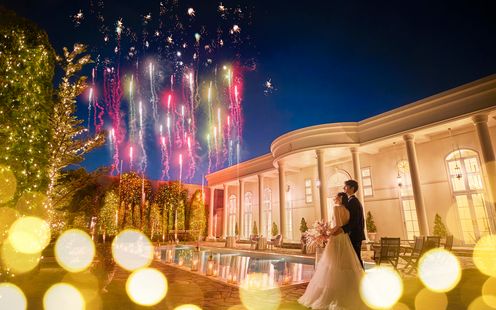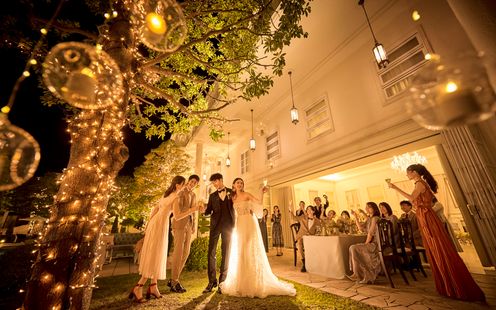 「ホワイトハウス」にはプール付きガーデンが、「ヴィクトリアハウス」には自然感じる緑まばゆいガーデン、とそれぞれの邸宅に隣接してオープンエアの空間が広がっています。広大なガーデンもふたりのアイデア次第で自由なウエディングステージに♪挙式後、フラワーシャワーやブーケトス、バルーンリリースなどのアフターセレモニーや、フォトブースを設置して記念撮影を楽しんだり、ナイトタイムには花火演出を行ったりしてふたりらしい演出をちりばめて!専属プランナーがふたりの希望にそって外国映画のワンシーンのようなオシャレなパーティを提案いたします。また、家族の一員であるペットも一緒に参列いただけます。