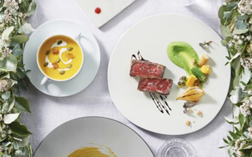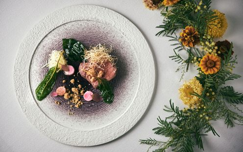 【茨城県産食材をふんだんに使用した水戸限定オリジナルメニューが登場】グランドメニューに加えて、水戸限定で茨城県産の食材をふんだんに使用したコース料理が完成。常陸牛・奥久慈の軍鶏・ホウボウ・茨城県産野菜など地元産素材にこだわったメニュー。一品一品素材~調理までこだわったコースで舌の肥えたゲストも大満足の内容へ。メインのお肉料理は4種のソースからゲスト自身がお好みのソースを2種類選んで仕上げる演出も。