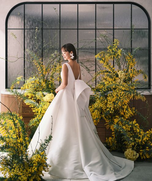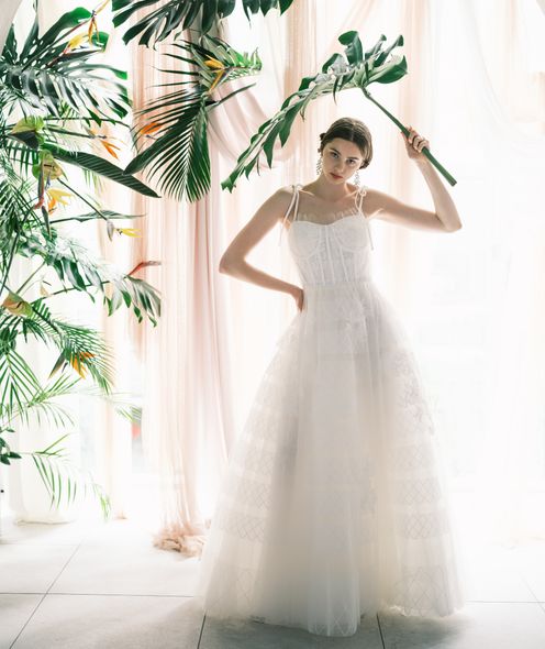 “MIRROR MIRROR”は、”鏡に映る自分を愛せるように”というコンセプトのもと、業界最大手のT&Gが手掛けたオリジナルのドレスショップ。世界中から選りすぐりの最新ブランドドレスや小物を揃え、ウェディングのトータルコーディネートを実現。これまでのドレスショップになかった、ドレスを着たまま自分だけのコーディネートを楽しめるスタイリングルームも充実。心ゆくまで自分にぴったりのアイテムをお選びいただけます。オリジナルウェディングにふさわしい、新婦一人ひとりの想い、憧れ、テーマ、スタイルなど様々なリクエストに500着以上のドレスから専属プランナーがご提案していきます。
