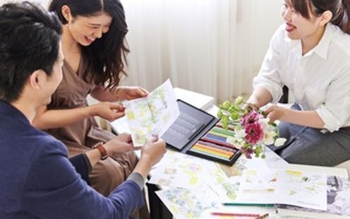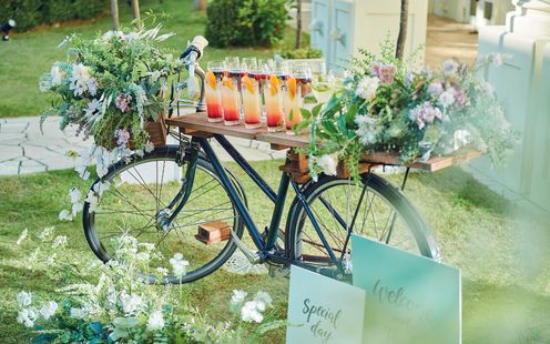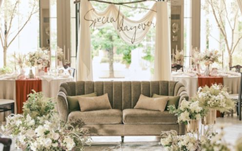 専属のフラワーコーディネーターが、トレンドの知識を活かしながら、ふたりらしさを最大限に表現いたします。数多くのパーティを手掛けてきたスタッフが、ふたりの気持ちを形にします。ペーパーアイテム、トーション、ショープレートなど、すべてを憧れイメージにセレクトいたしますので気軽に相談ください。また、一軒家を貸切なのでエントランスからガーデン、会場までふたりが憧れるテーマでフルオーダーの会場コーディネートも可能です。
