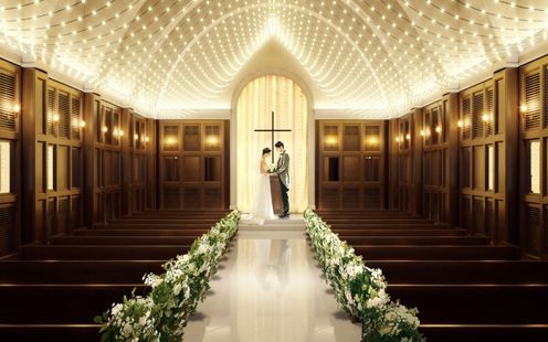 星空をイメージした光の演出が人気!凛とした空気漂う神聖な空間で厳かなセレモニー