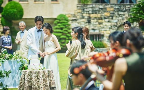 四季の彩りを感じられる庭園では記念撮影だけでなく、ガーデン挙式やフラワーシャワー、乾杯、デザートビュッフェ、ケーキ入刀などご希望の演出が叶います。ゲストをお迎えする場所として選ばれる方も少なくありません。風にそよぐ葉ずれの音や小鳥のさえずりがゲストとの和やかなひとときを彩ります。