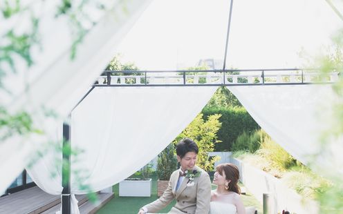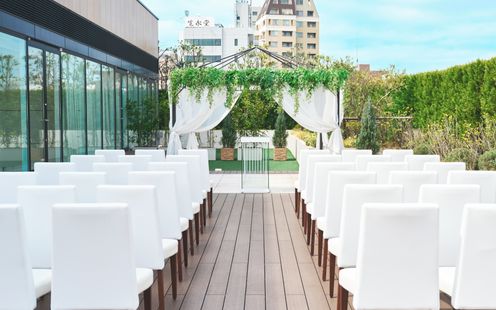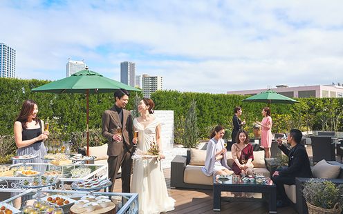 会場からひと続きのオープンテラスでウェルカムパーティやガーデン挙式も叶う!