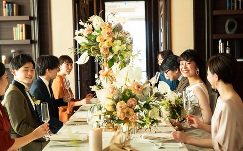 「家族や大切な仲間と過ごす一日」をテーマにした会場は、全体で1日1組の貸し切り利用でございます。挙式、ウェルカムパーティ、披露宴と過ごす時間の中で上質なひと時をお過ごしくださいませ。