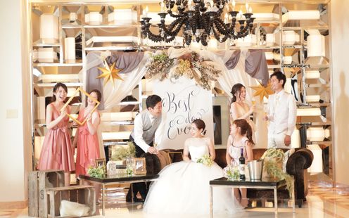 パーティ会場にはそれぞれ専用のロビーがございます。ウエルカムスペースとしておふたりの写真やお気に入りのものを飾ったり自由にお使いいただけます。