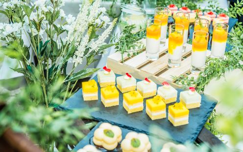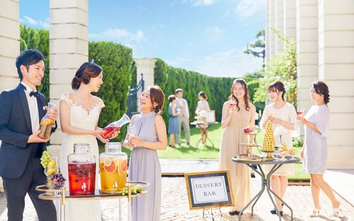 ふたりらしさが感じられる「ウェディングケーキ」。写真の中から選ぶのではなく、パティシエと会話をしながらデザインを決めていきます。紙に描かれるデザインが、結婚式当日、ふたりのもとに飛び出してくるのです。フルコースを締めくくる「デザート」は季節ごとにアレンジされたハンドメイド。そしてふたりの思い出が詰まったデザートビュッフェをお出しすることも可能です。ゲストに喜んでもらえる幸せなデザートを一緒に創っていきましょう。