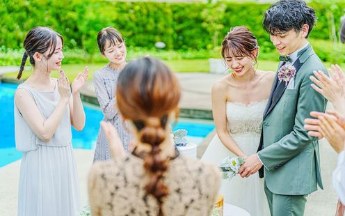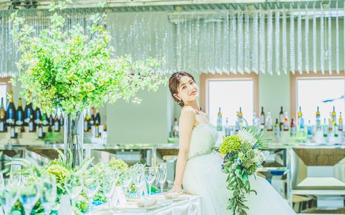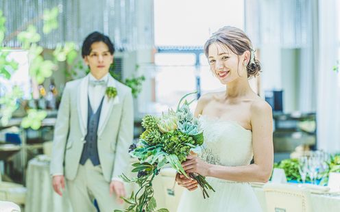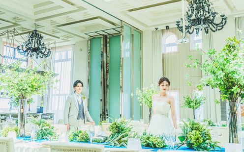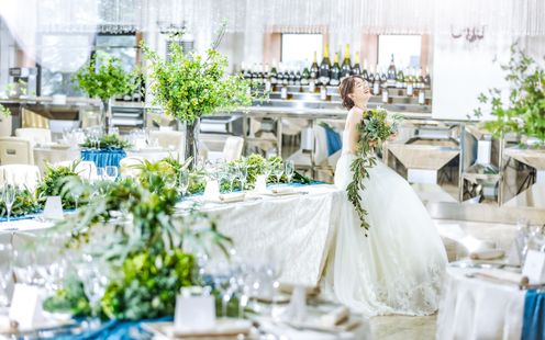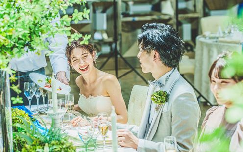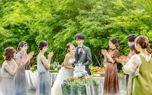 緑・光・水が彩る開放感あふれる空間をふたりらしい世界観で彩って