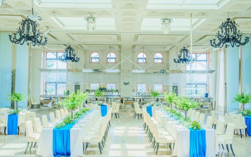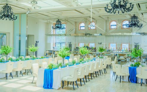 フォーマルな1日を過ごしたいおふたりにおすすめの会場「カーサ・ディ・ケリー」。季節や時間により表情を変える九頭竜川の雄大な姿がおふたりを祝福、その見事な景色だけでもゲストのおもてなしのひとつになるでしょう。素材にこだわった美食と楽しい会話の優雅な時間をお過ごしください。可動式パーティションにより会場サイズ変更可。少⼈数ご希望の⽅にもお勧めです。